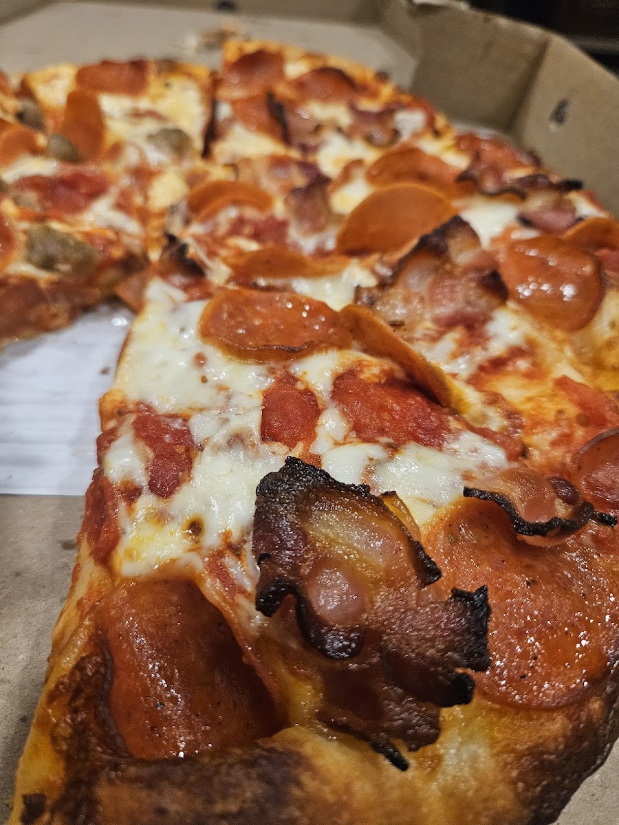 The menu is built around comfort and familiarity, and that’s exactly where it shines. One of the standout choices is the Medium Pepperoni and Bacon Pizza. It’s hearty, well-balanced, and generously topped, offering that classic combination of savory bacon and pepperoni that feels satisfying from the first slice to the last. The crust holds up nicely, and the flavors come together in a way that keeps customers coming back. It’s the kind of pizza people often mention in reviews when talking about reliable go-to orders.